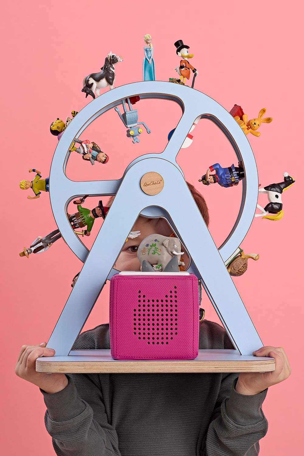 Kinderzimmer-Chaos ade! QueChaLe's handgefertigte Design-Regale für Tonies schaffen Ordnung mit Stil – als magnetisches Rad, Waage oder modernes Regal. Made in Germany.